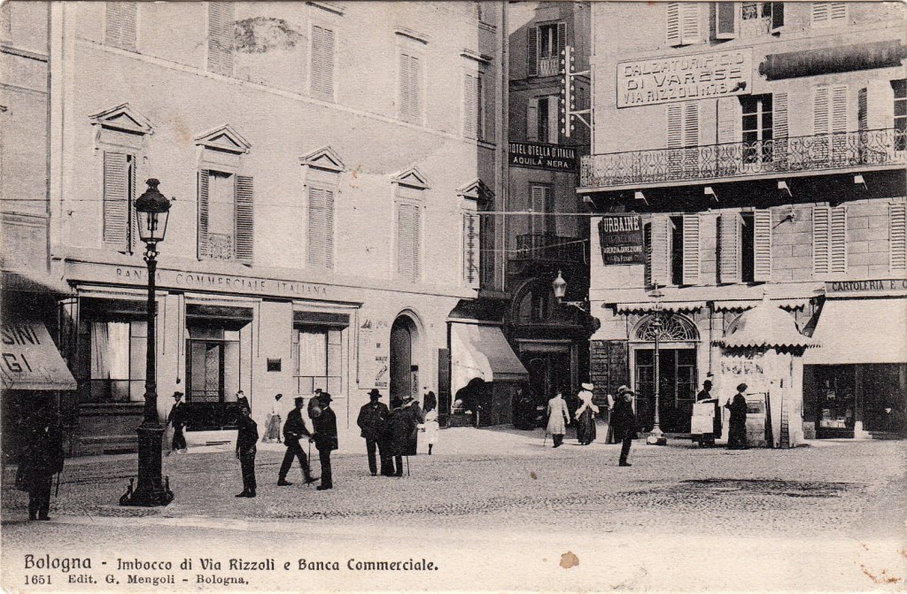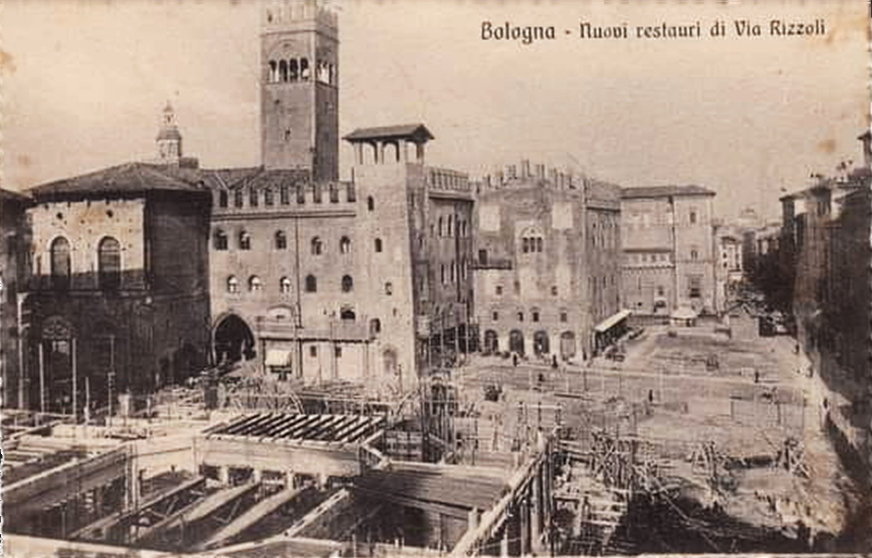 Fra il 1910 e il 1920 fu ridisegnato il cuore del centro storico e commerciale compreso fra il Palazzo Re Enzo e le Due Torri. I grandi lavori proseguirono fino agli anni Trenta con l’allargamento dell’asse Rizzoli-Ugo Bassi (un tempo Via Mercato di Mezzo e Via Vetturini). Dopo ulteriori modificazioni, si conclusero definitivamente nel 1955.
