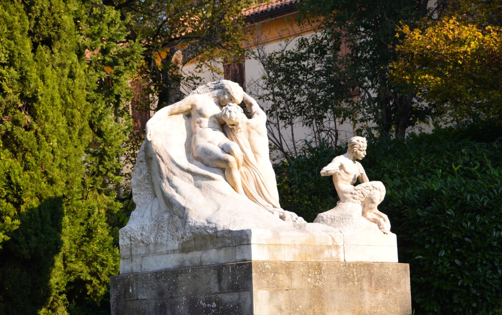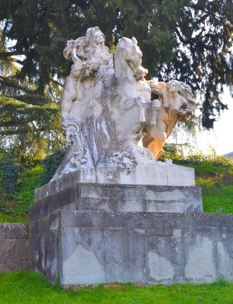 La “vasta scenografia marmorea” è l’opera più illustre e di maggiore impegno di Leonardo Bistolfi (1859-1933), artista del liberty amato da D’Annunzio e considerato lo “scultore ufficiale dell’Italia monarchica e liberale”.