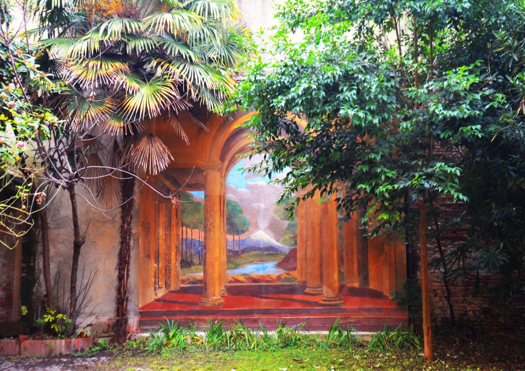 Nello sfondo del cortile è una prospettiva a trompe-l’œil di Luigi Busatti del XIX secolo.