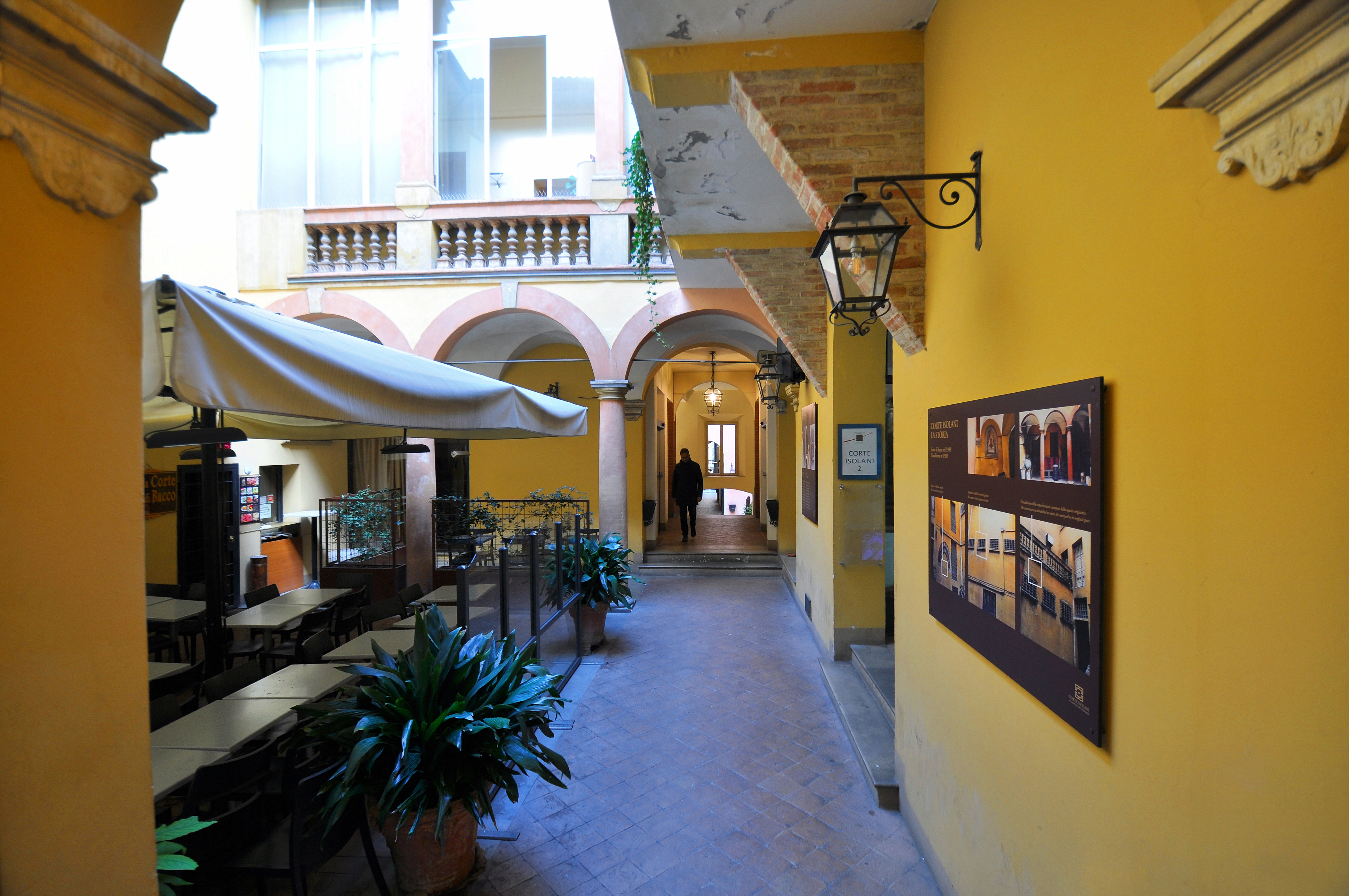 Da sotto il portico di Palazzo Isolani si accede alla Corte Isolani, un affascinante passaggio pedonale che collega Piazza Santo Stefano a Strada Maggiore, attraversando i cortili interni del palazzo storico. Oggi la corte offre un’atmosfera elegante, animata da negozi e locali di ristoro.