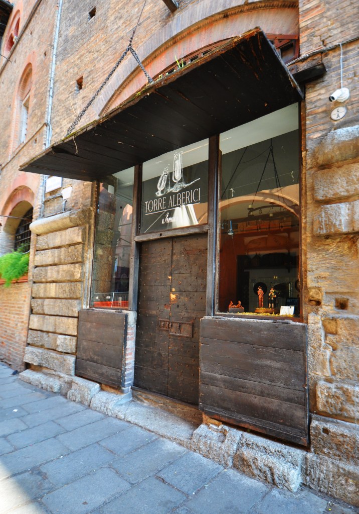 Imboccando via Santo Stefano, sul lato sinistro, si incontra la Torre Alberici. Nel 1273 Amedeo Alberici fece assottigliare i muri di circa due metri e aprì un varco al piano terra per ricavarvi una bottega, considerata la più antica della città. Nel corso dei secoli, questo spazio ha avuto diverse destinazioni d’uso. All’interno del cortile, la torre conserva ancora una splendida scala del XVI secolo. Sopra l’ingresso della bottega si può osservare la serraglia lignea a ribalta, con chiusure e saracinesche originali: una struttura in legno rinforzata con ferri e chiodi, dotata di catene azionabili dall’interno.