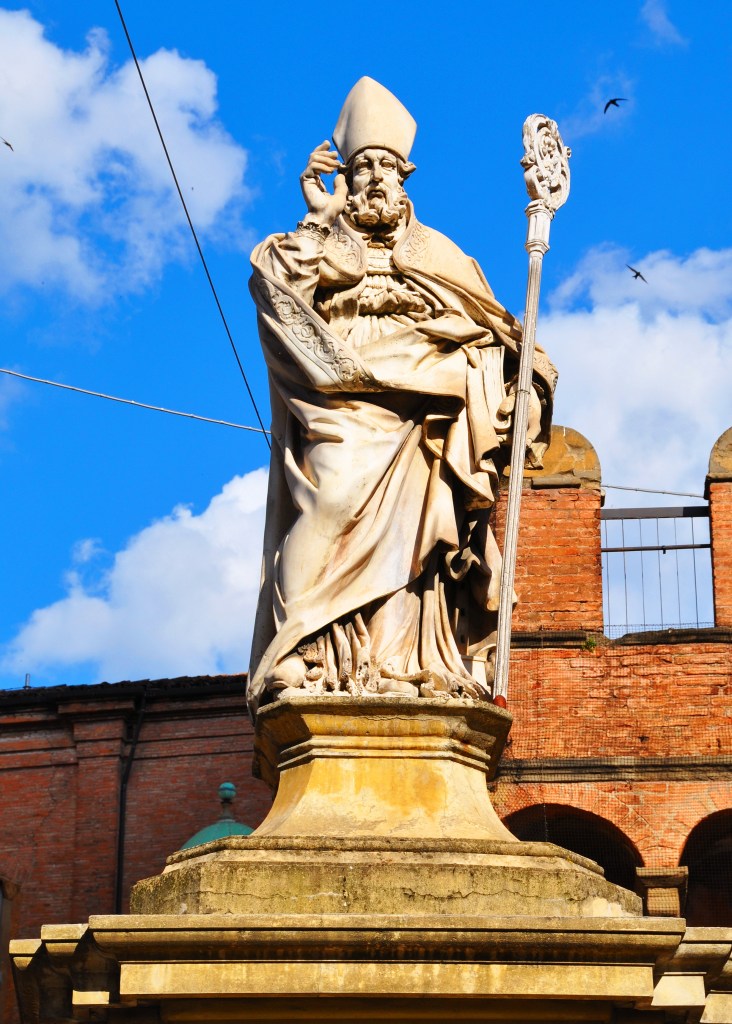 Sotto le Due Torri si erge la statua di San Petronio, realizzata in marmo da Gabriele Brunelli nel 1682. Dopo essere stata conservata per oltre un secolo all’interno della basilica omonima, dove si trovava dal 1871, il 4 ottobre 2001 la statua del Santo Patrono di Bologna è stata ricollocata nella sua sede originaria, ai piedi delle Due Torri, destinazione prevista fin dalla fine del XVII secolo.