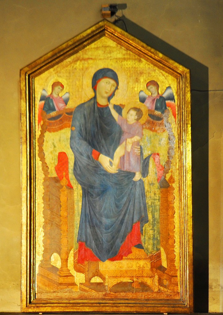 L’interno custodisce numerose opere di grande valore artistico; tra queste spicca la Maestà in trono di Cimabue, situata in una cappella dell’area absidale e considerata il vero tesoro della chiesa.